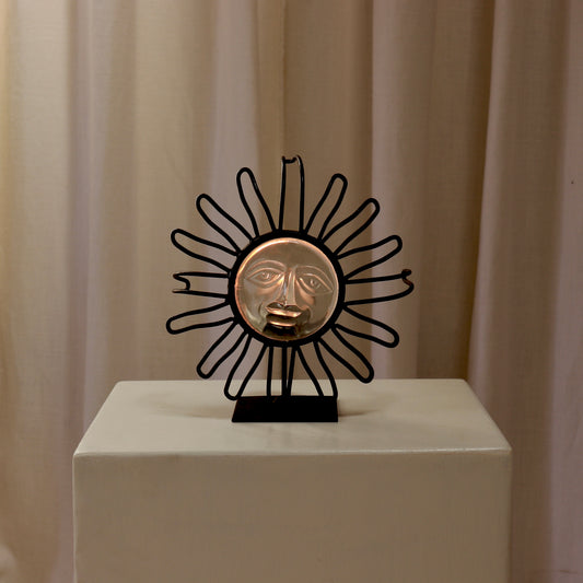 Sun Face Candle Holder — Wrought Iron & Pressed Glass