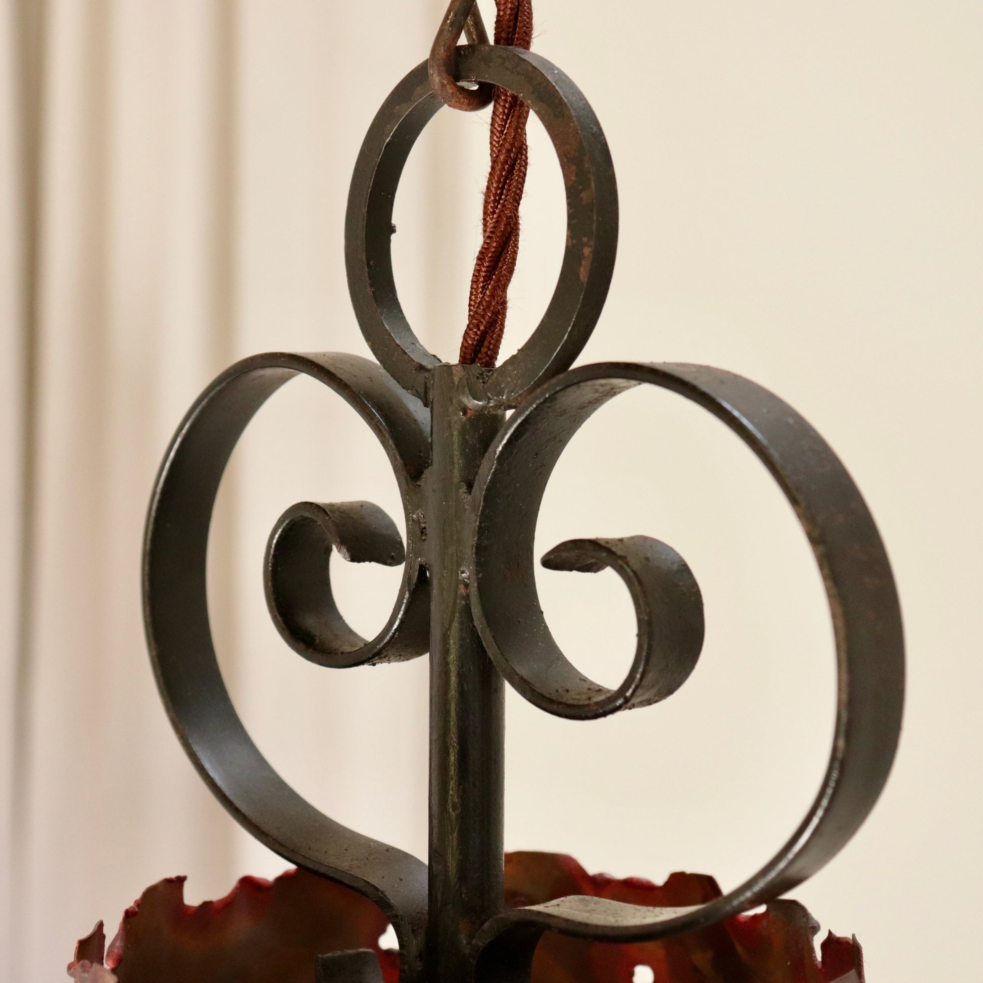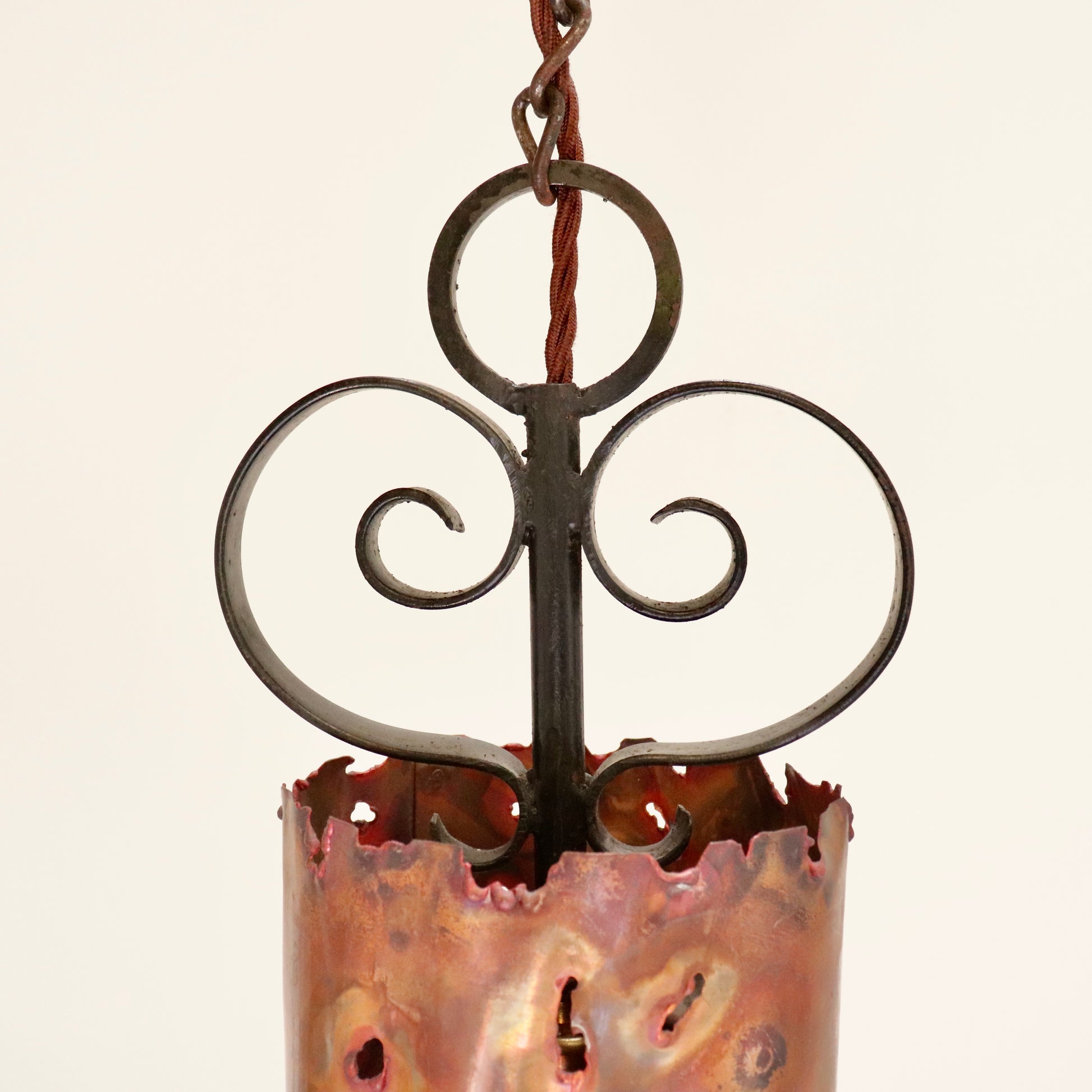 Artisan-Made Copper and Wrought Iron Pendant Light