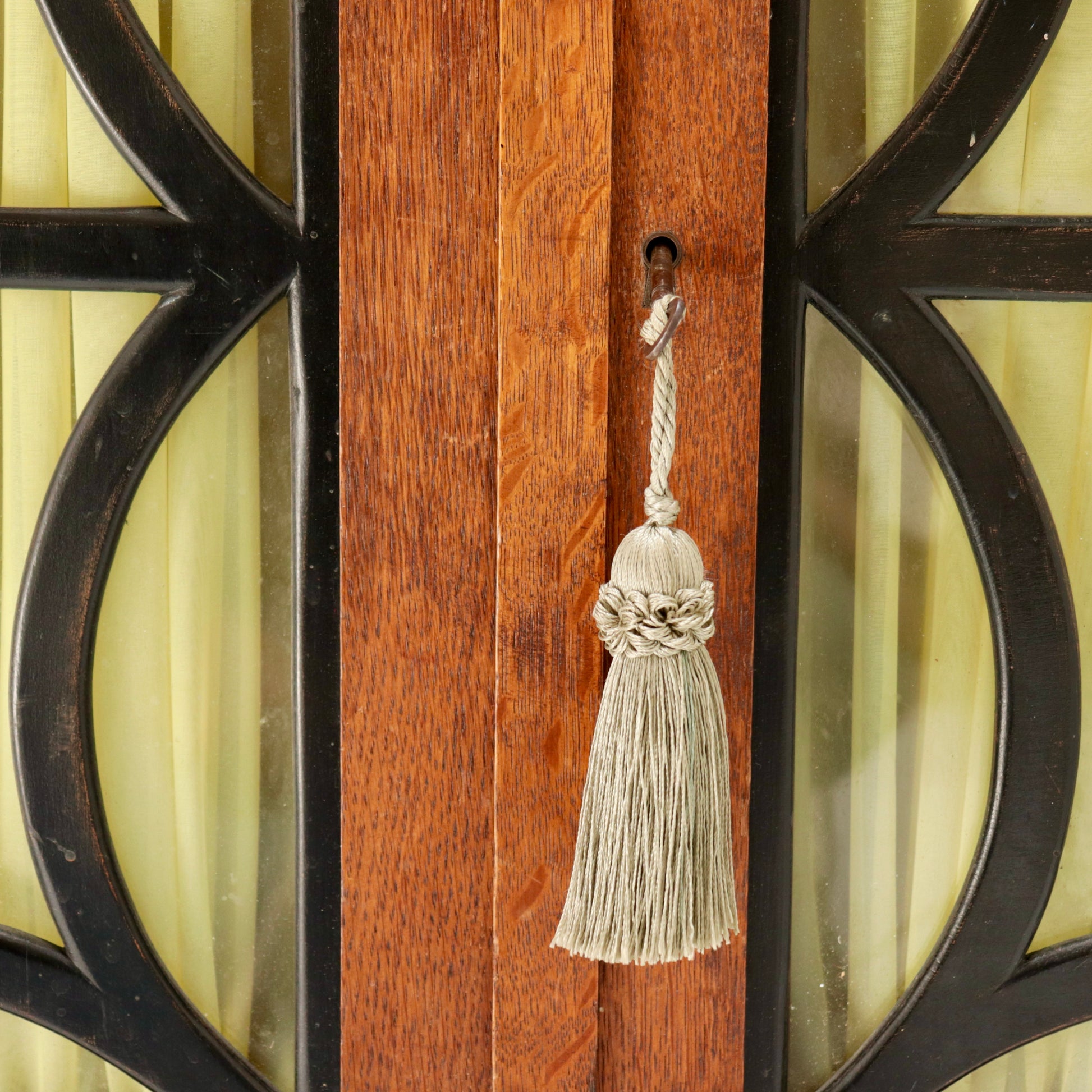 Good vintage condition with age-related wear throughout, including minor marks to the finish and some light distressing to the fabric linings. Structurally solid with working lock and key (decorative tassel included).