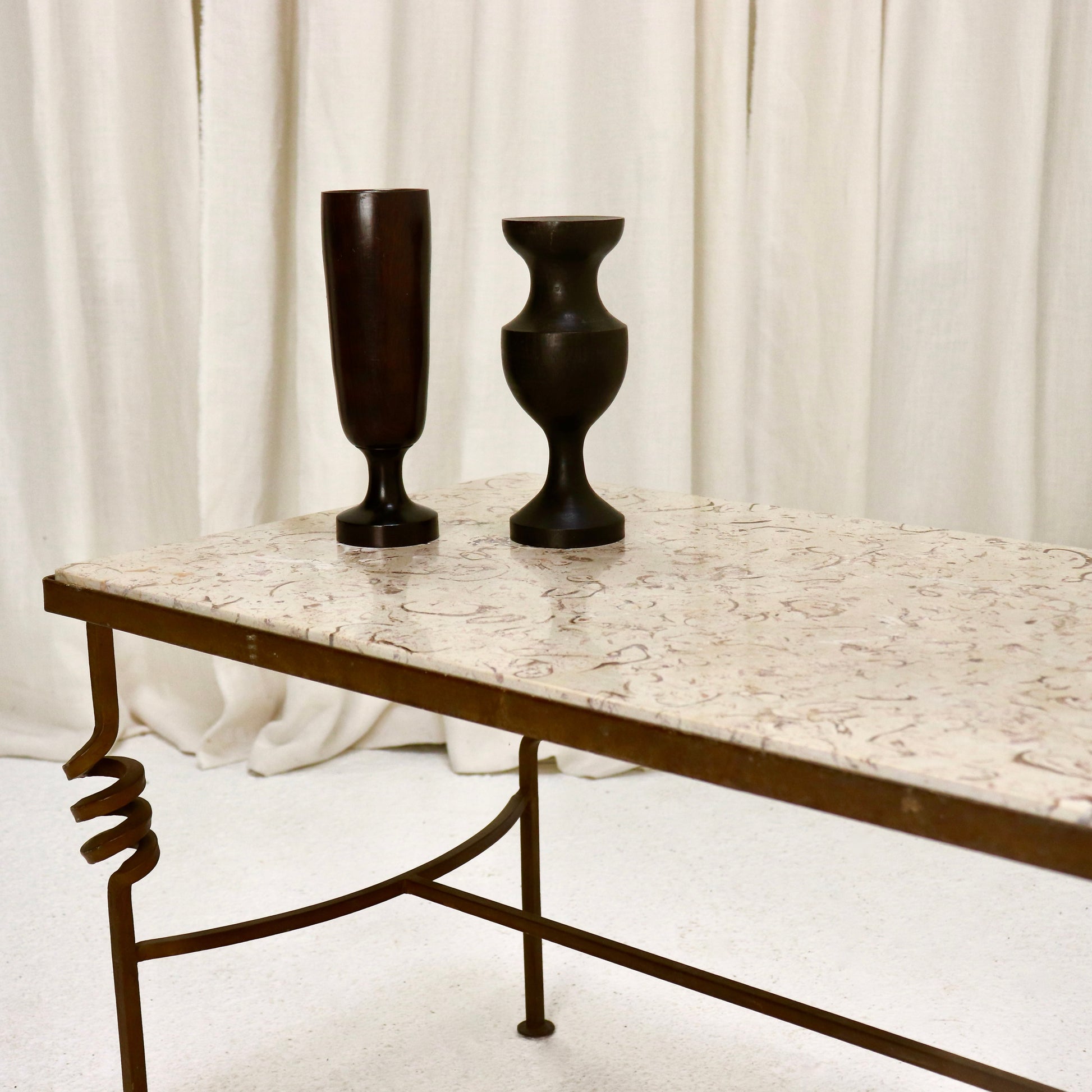Fossilised Stone & Wrought-Iron Coffee Table, c. Late 20th Century