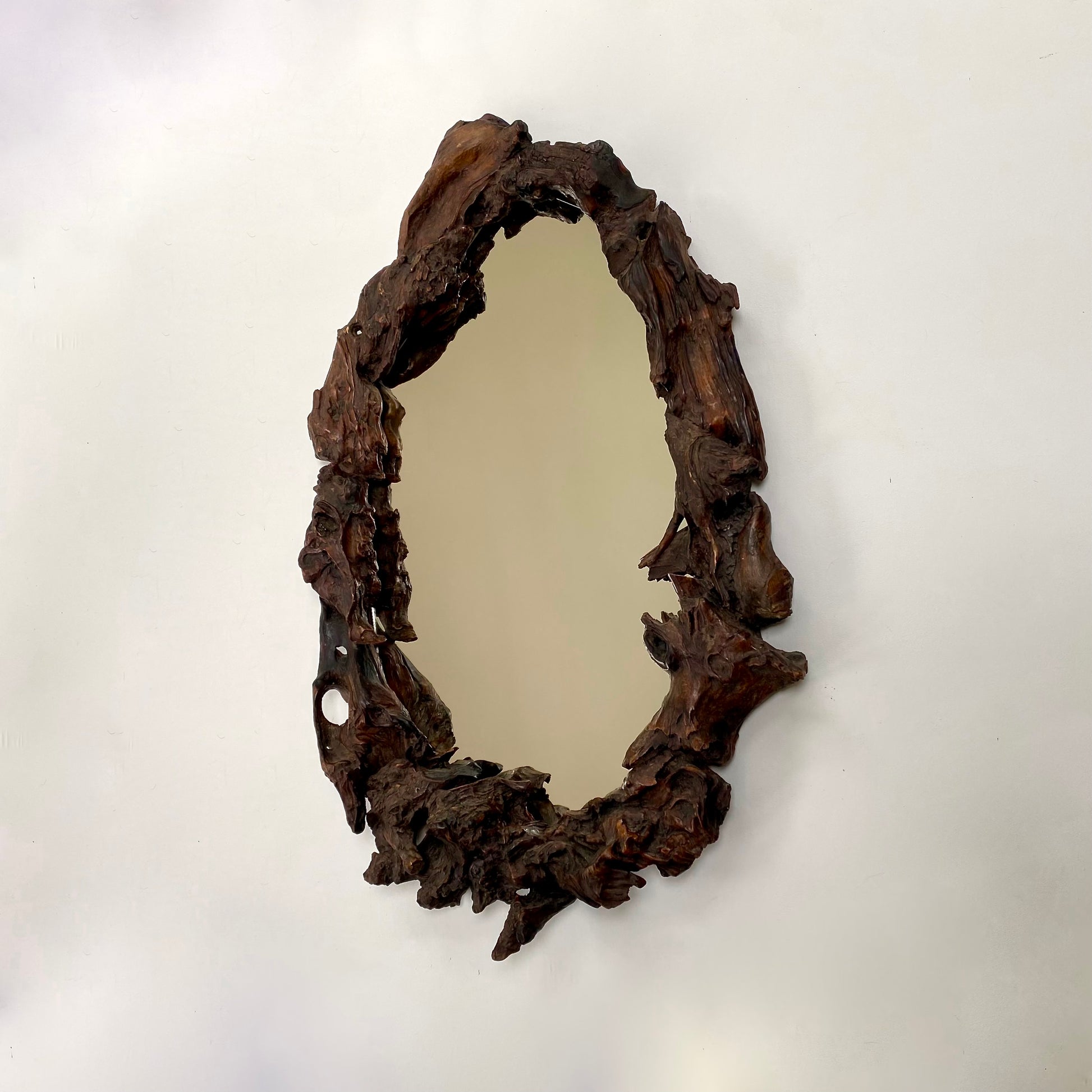 The generous mirror plate is encircled by gnarled and twisted sections of vine root - nature at its most disheveled, and all the more beautiful for it.