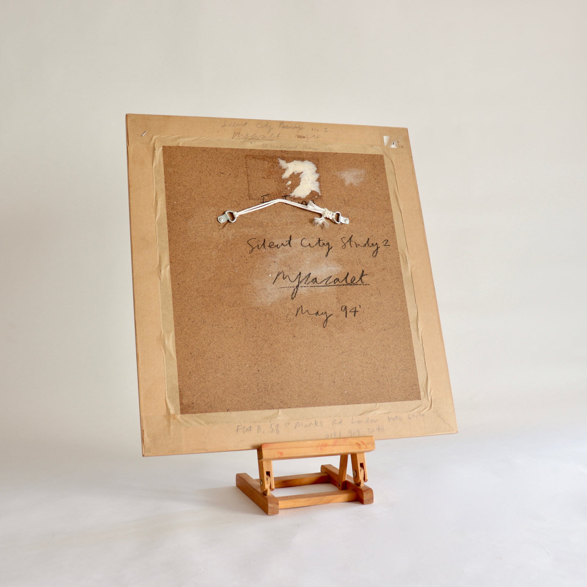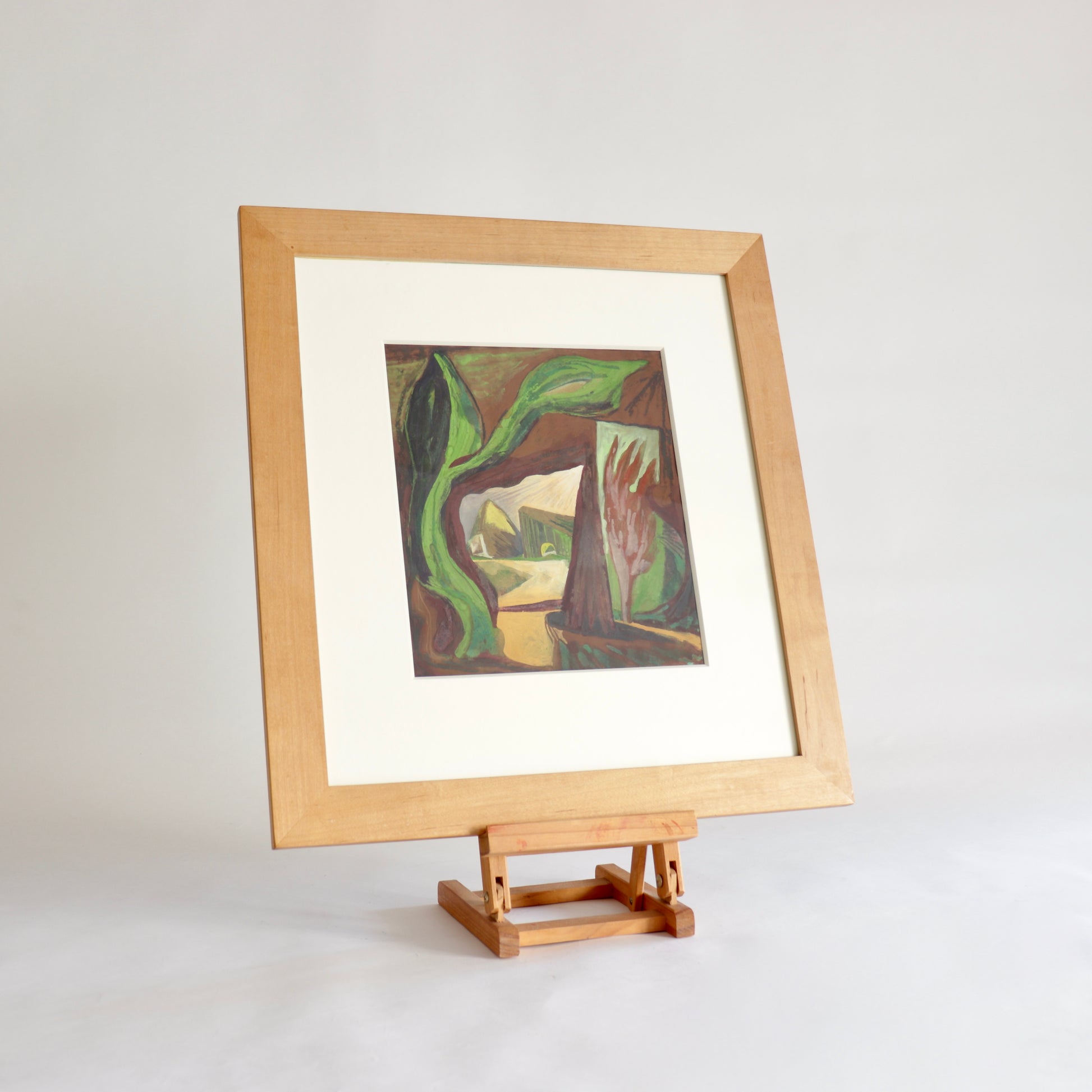 A richly layered gouache painting by British artist Mark Cazalet (b. 1964), titled Silent City Study 2, dated May 1994. This atmospheric work is part of a series exploring architectural and spiritual quietude through painterly abstraction. It balances organic forms with structural elements in a contemplative palette of earthy greens, ochres, and browns.