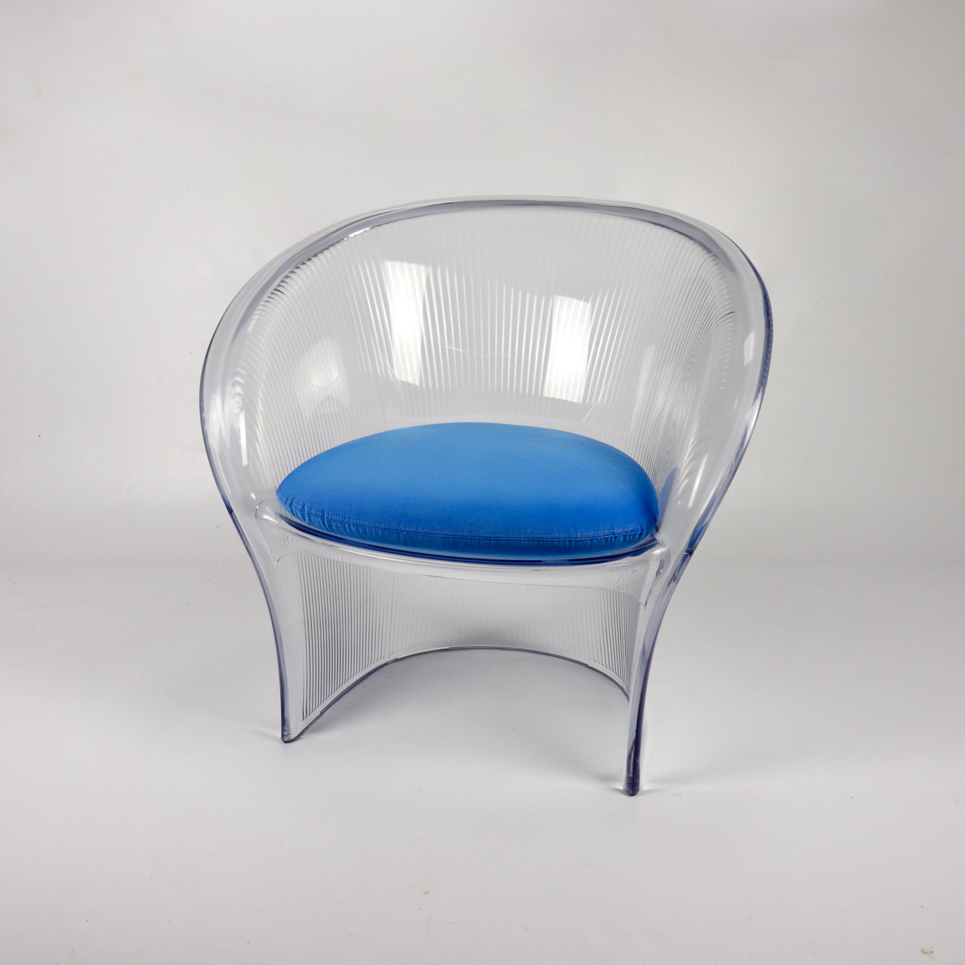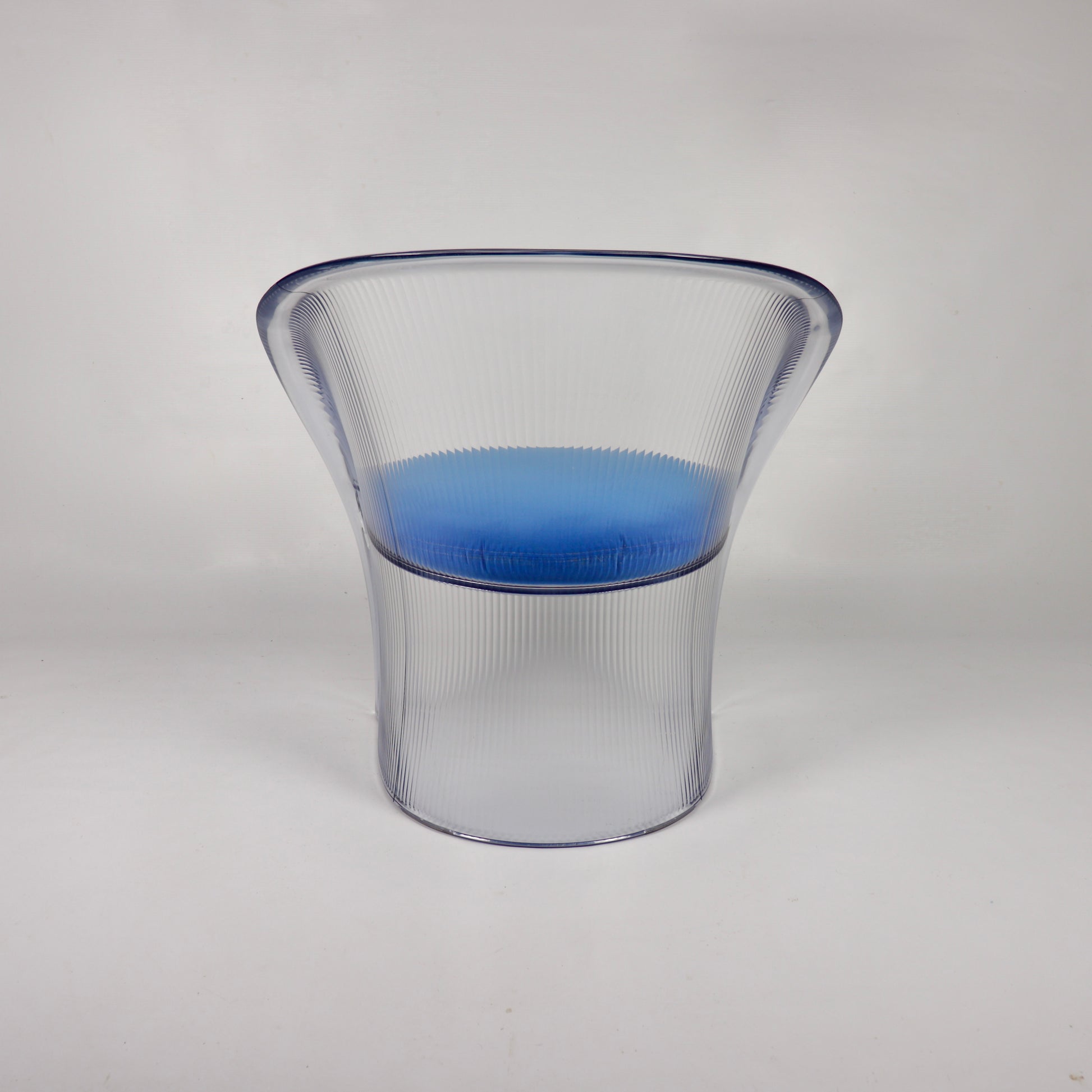 Organically shaped polycarbonate chair by Pierre Paulin, manufactured by Magis and upholstered in a soft Kvadrat fabric.
