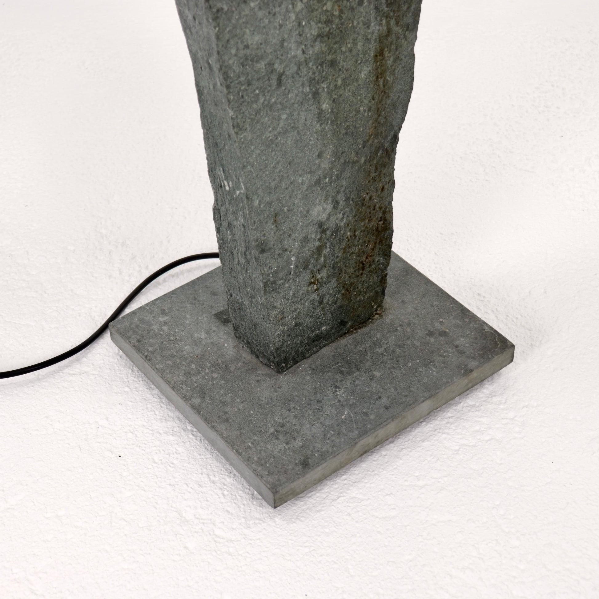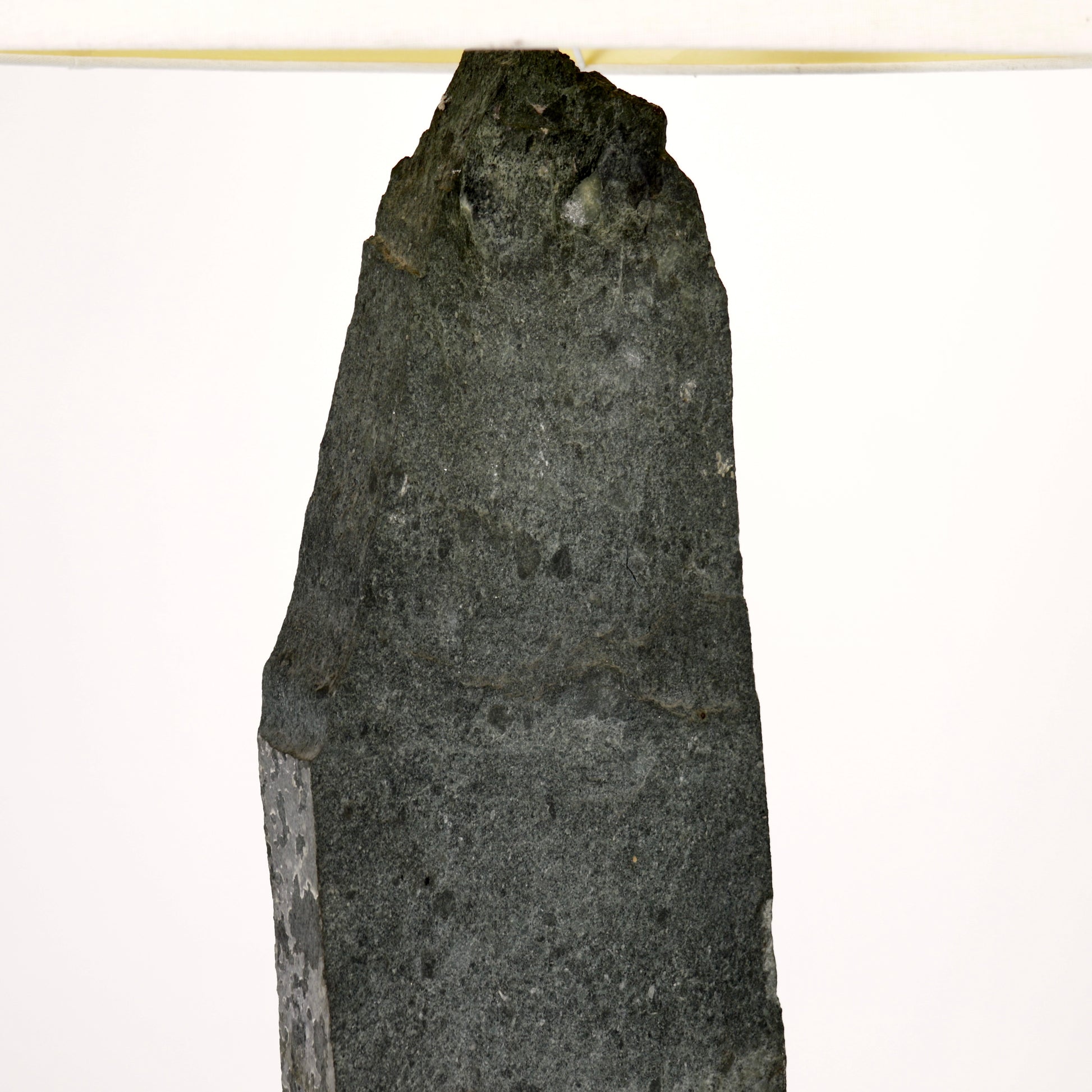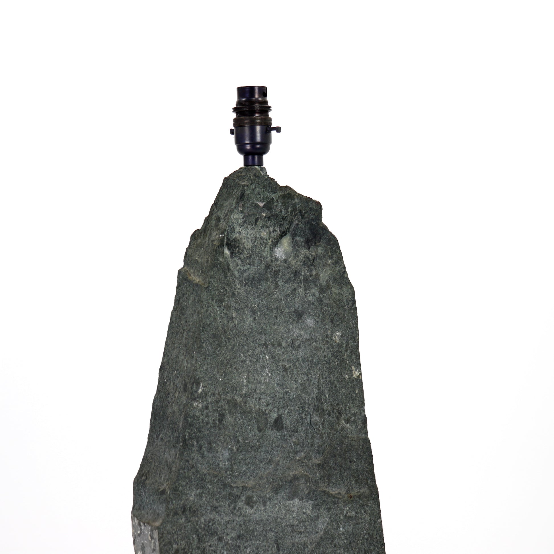 This commanding floor lamp is hewn from a single slab of slate, as if pulled from a forgotten field of standing stones. Its raw, sculptural form brings a primal, elemental presence to any interior, evoking both ancient landscapes and mid-century modern minimalism.