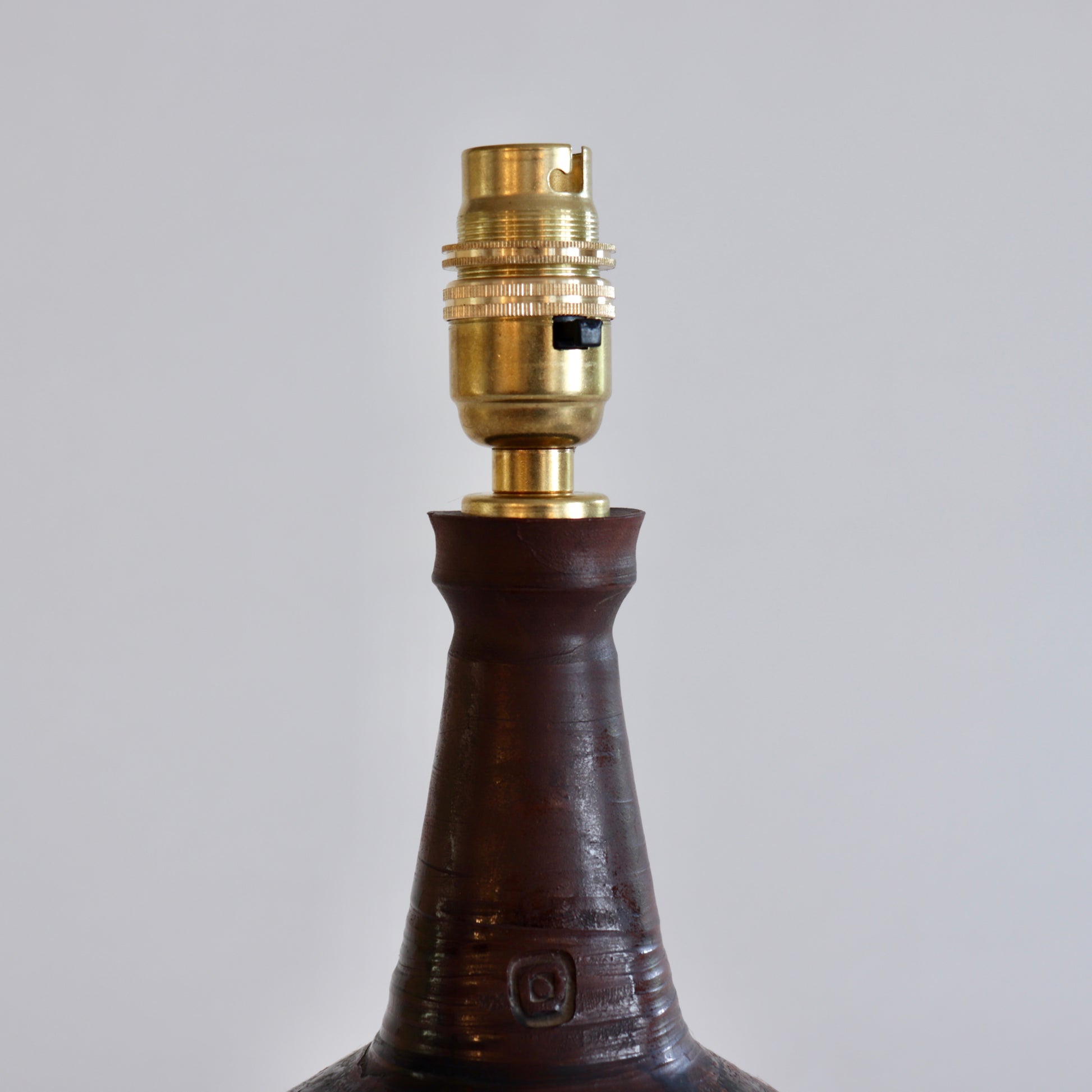 A beautiful mid-century terracotta lamp base with a blend of earthy natural charm and a subtle deep brown drip glaze.