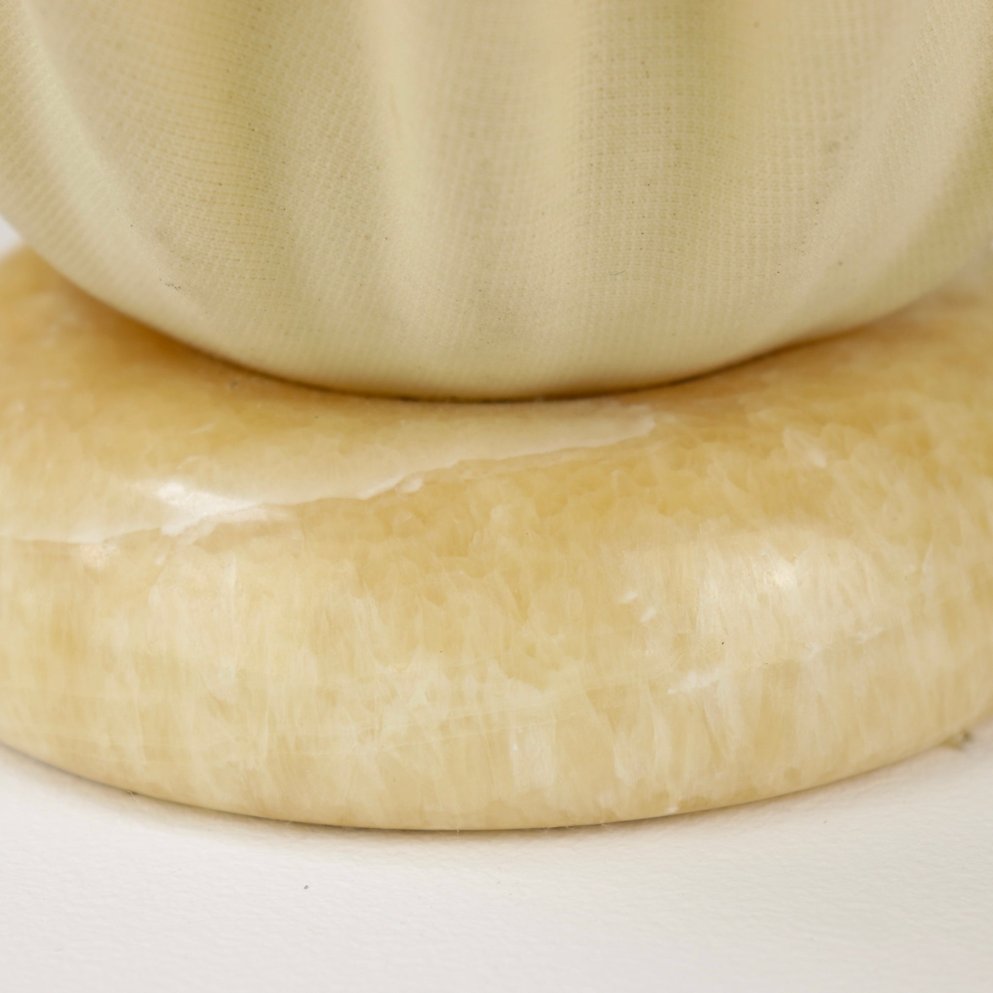 Made from textile coated in resin and sat on a quartz stone base. Both lamps are in fantastic condition.