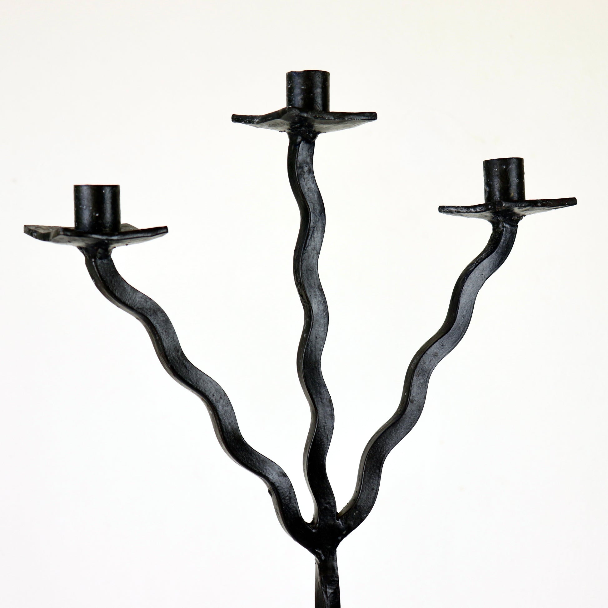 A trident form vintage wrought iron candelabra with a superb twisted and wavy flow.